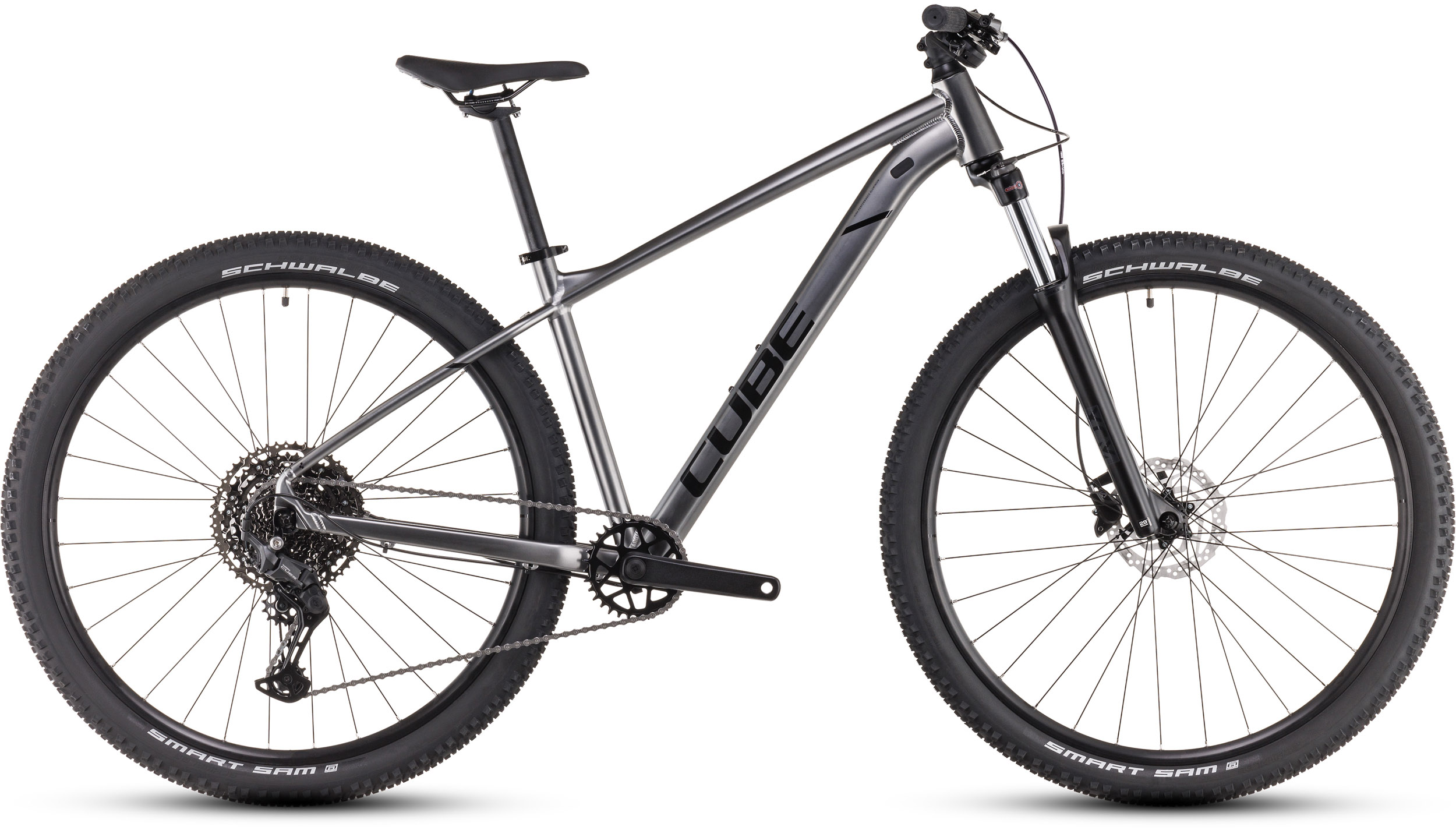 Power ist gut, Kontrolle ist besser. Deshalb kommt das Cube Aim SLX auch mit einer geschmeidig arbeitenden Gabel mit 100 mm Federweg und Lockout-Funktion daher, die Schläge und Ruckler vom Untergrund souverän abdämpft. Außerdem mit leistungsstarken hydraulischen Shimano Scheibenbremsen, einem konisch zulaufenden Steuerrohr und supergriffigen 2.25 Zoll Reifen. Das Ergebnis ist ein kontrolliertes Fahrgefühl, egal wo, egal wann. Die breit gefächerte 11-fach Cues Schaltung von Shimano hat für jede Route und jeden Anstieg den richtigen Gang parat, und das per Fingerzeig vom Lenker aus. Last, but not least kann der Rahmen mit einer versenkbaren Sattelstütze nachgerüstet werden. Keine Ausreden mehr, jetzt geht’s los!