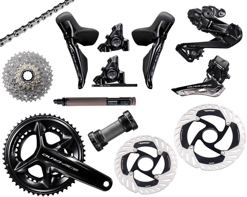 Lieferumfang – Shimano DURA ACE Di2 R9270 2×12-fach Gruppe + Scheibenbremsen 140/160mm